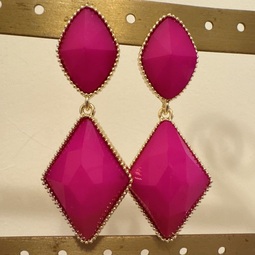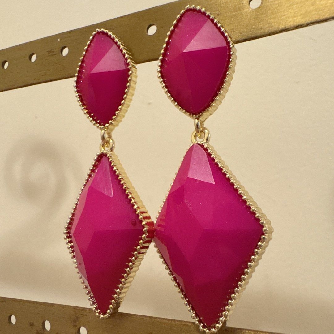 Arete geométrico fucsia, bordes Dorados